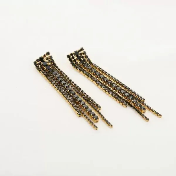 Voeg instant glamour toe aan je look met de Divine Drape strass oorbellen. Deze elegante oorhangers van 7 cm lang zijn gemaakt van hoogwaardig roestvrij staal (RVS) en sprankelen in twee luxe kleurcombinaties: groen/goud en zwart/goud. De lange slierten vol strass steentjes zorgen voor een schitterend effect – perfect voor een avondje uit, feest of speciale gelegenheid.