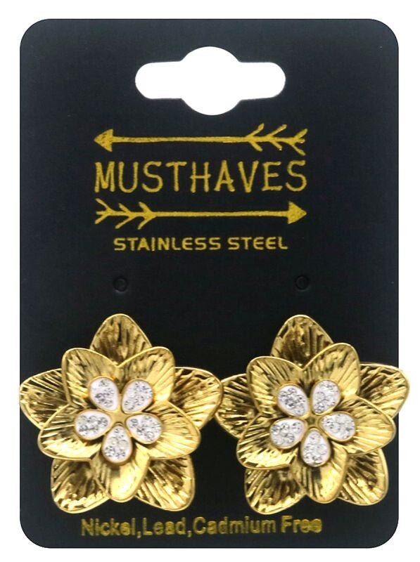 Sjieke bloemen oorstekers met strass-steentje in het midden